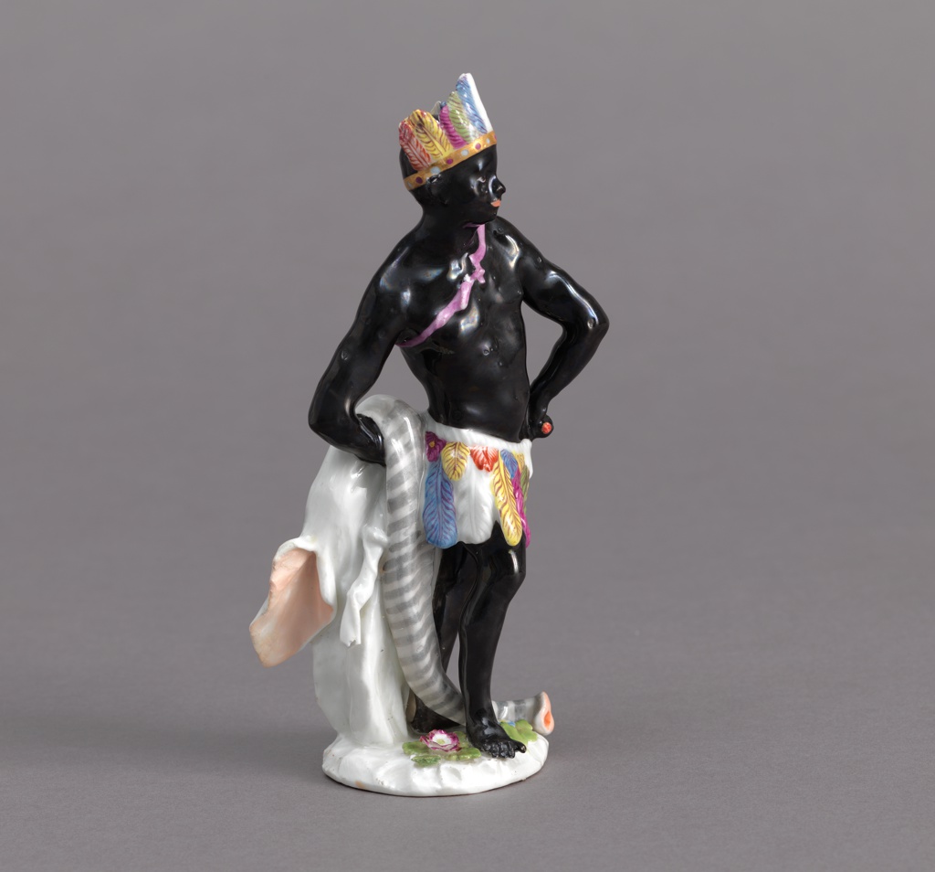 Allegorical Figure of "Africa" Figure; Manufactured by Meissen Porcelain Manufactory (Germany); Modeled by Johann Joachim Kändler (German, 1706–1775); Germany; hard paste porcelain, vitreous enamel, gold; H x W x L: 15.9 x 5.7 x 8.5 cm (6 1/4 x 2 1/4 x 3 3/8 in.); Gift of the Estate of James Hazen Hyde; 1960-1-40