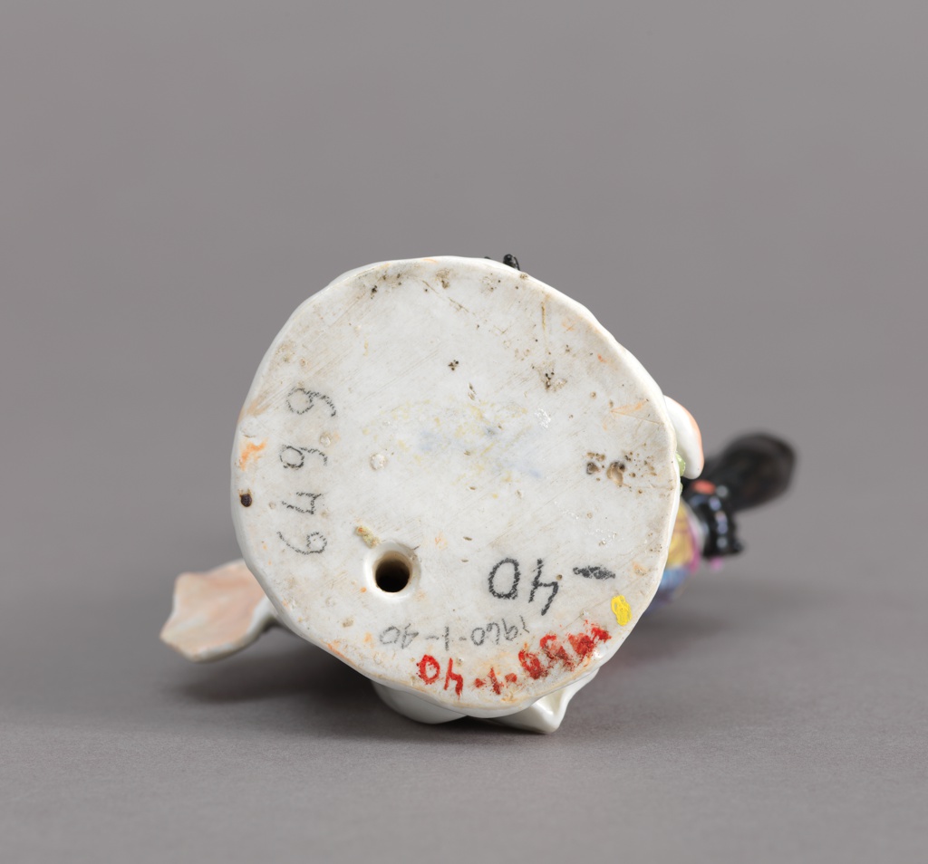 This is a figure. It was modeled by Johann Joachim Kändler and manufactured by Meissen Porcelain Manufactory. It is dated 19th century and we acquired it in 1960. Its medium is hard paste porcelain, vitreous enamel, gold. It is a part of the Product Design and Decorative Arts department.