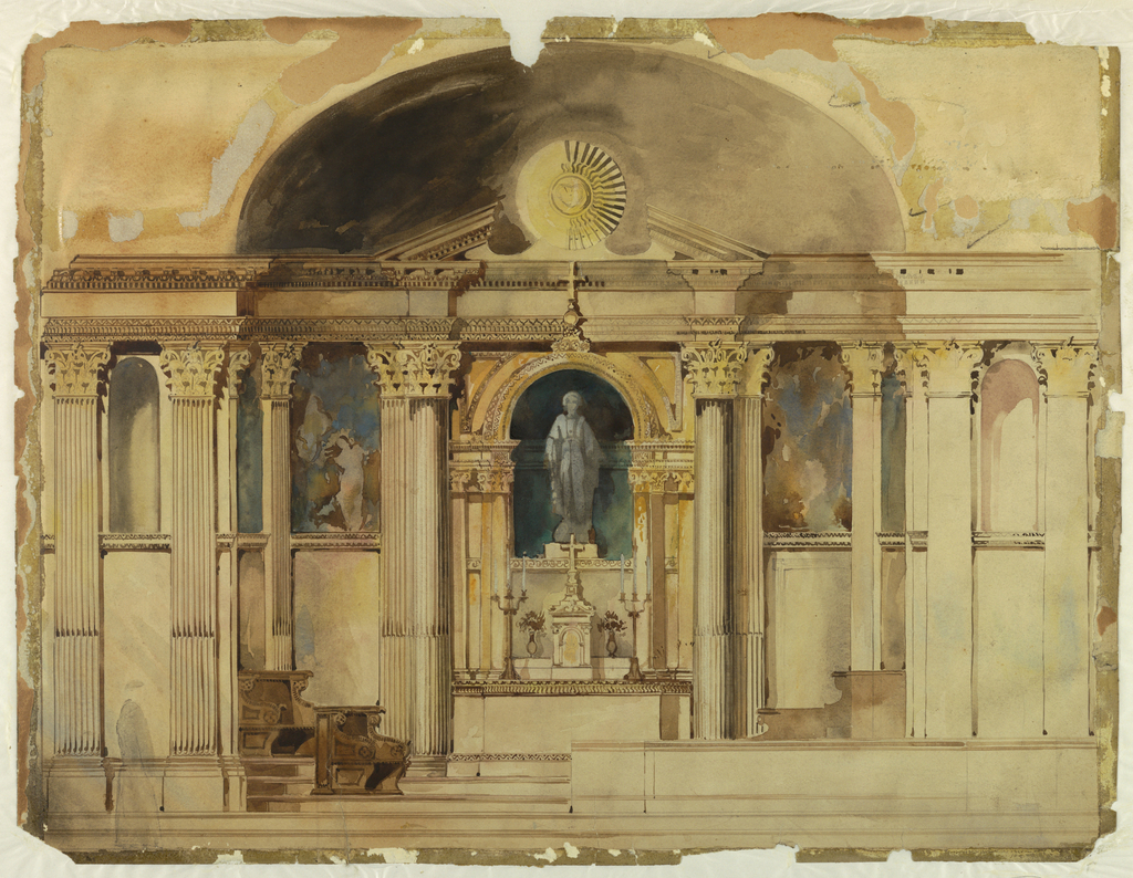 Drawing, Rendering of Chancel; Leon Dabo (1868–1960); USA; brush and watercolor, gouache, graphite on paper; 54.2 x 71 cm (21 5/16 x 27 15/16 in.); 1960-239-3