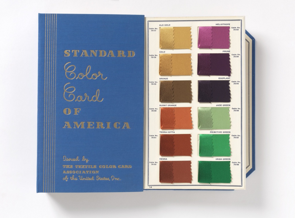 When World War I blocked the import of quality dyes from Germany, American textile, ribbon, leather, straw, and feather manufacturers formed the Textile Color Card Association of the United States to facilitate color coordination across the fashion trades. Subscribers received standard color cards for the spring and fall seasons each year.