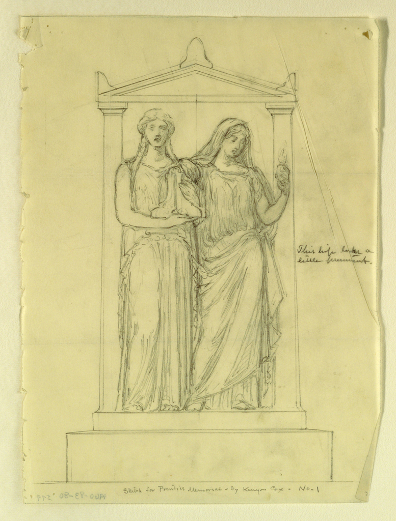 Inscribed in graphite, lower margin: Sketch for Prentiss Memorial - By Kenyon Cox - No. 1; center right: This hip[?] looks a / little [?]ment.