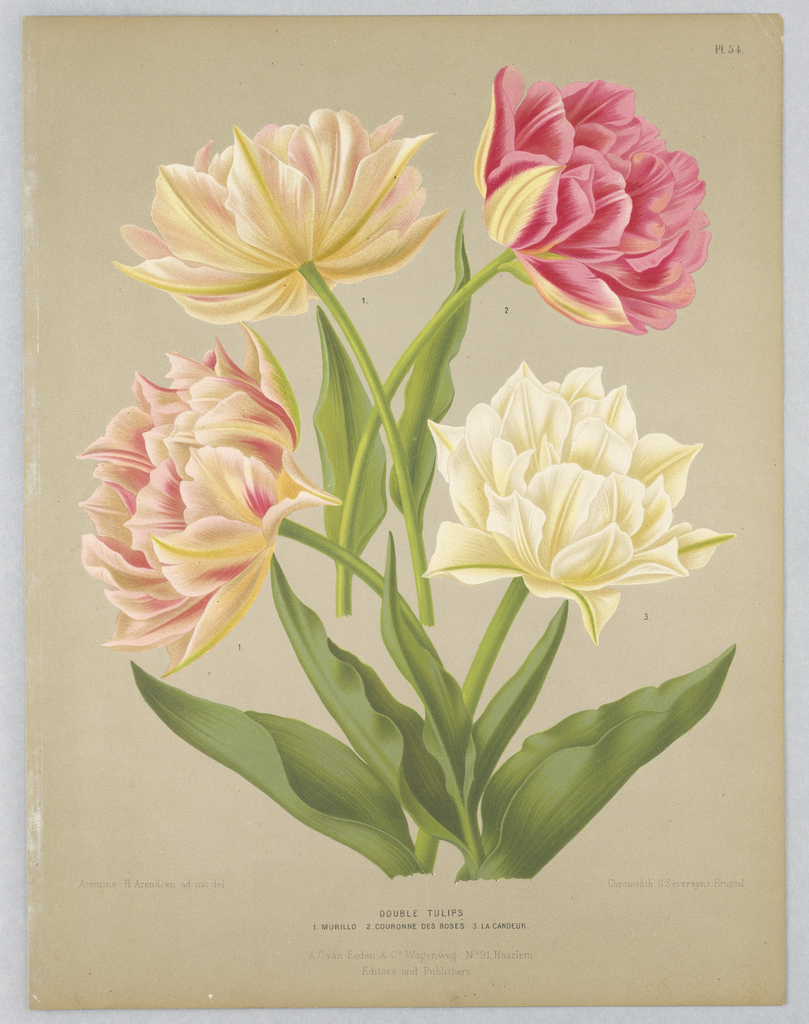 Print, Double Tulips, Plate 54 from A. C. Van Eeden's "Flora of Haarlem"