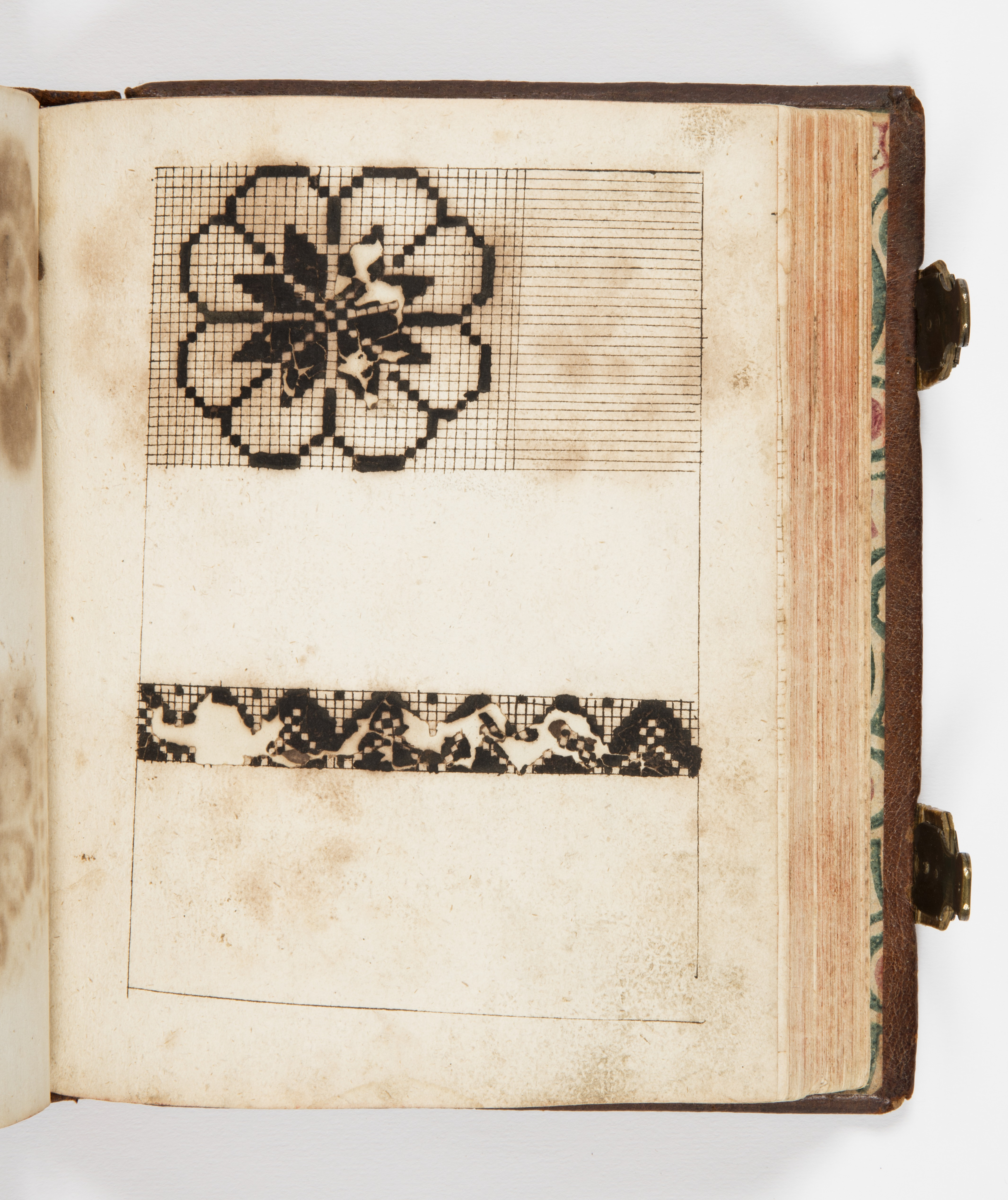 Pattern Book (Germany); leather, paper, metal; H x W x D: 20.5 x 16 cm (8 1/16 x 6 5/16 in.); Museum purchase from Au Panier Fleuri Fund; 1961-123-1