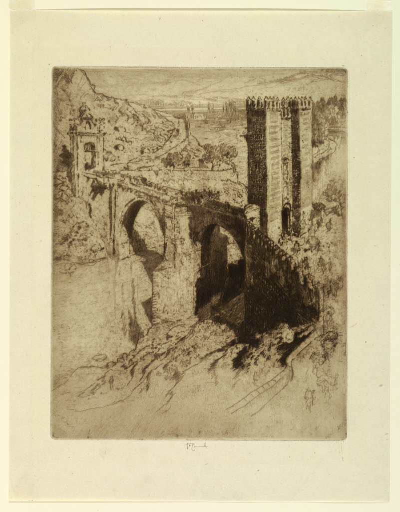 Print, Bridge of Alcantara, Toledo; Joseph Pennell (American, active England, 1857–1926); USA; etching on paper; 1961-148-18