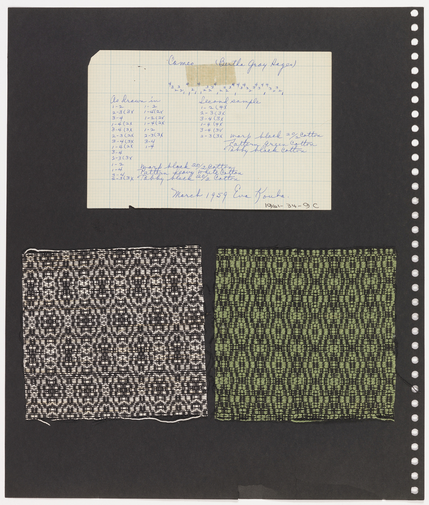 Samples (USA); Designed by Bertha Gray Hayes; Made by New York Guild of Hand Weavers (United States); cotton on paper; graph paper, ink on paper; 1961-34-9-a/c