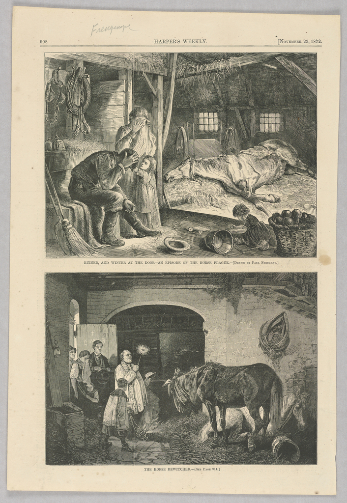 Print, Ruined, and Winter at the Door—An Episode of the Horse Plague; The Horse Bewitched, Illustration for Harper's Weekly (XVI, November 23, 1872, p. 908)