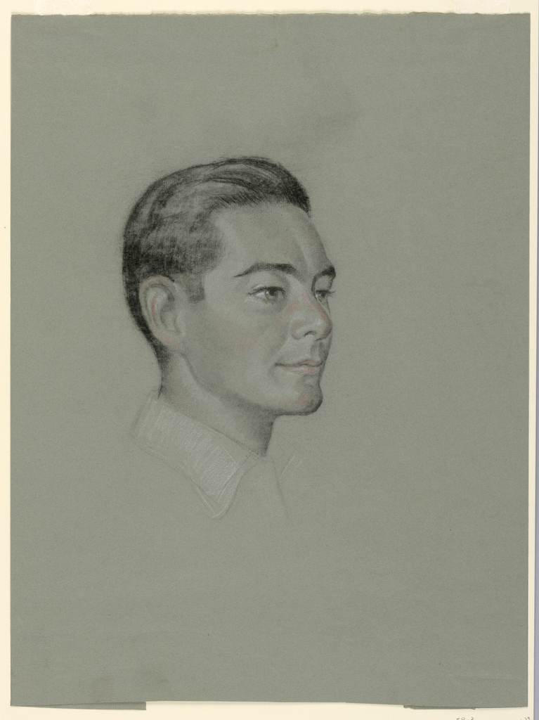 Drawing, Study for a Portrait of Roy Larsen; Designed by Griffiths Baily Coale (American, 1890–1950); USA; pastel on green-grey paper; 48.7 × 42.5 cm (19 3/16 × 16 3/4 in.); Gift of Mrs. Griffith Baily Coale; 1962-135-32