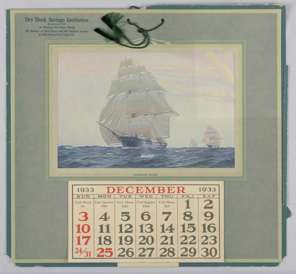 Calendar, Calendar for Dry Dock Savings Institution, Featuring "Homeward Bound" Mural