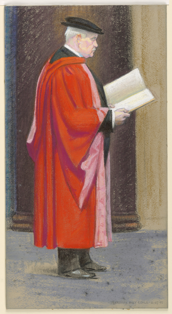 Drawing, Nicholas Murray Butler, Figure Study for Columbia University Mural; Griffiths Baily Coale (American, 1890–1950); USA; pastel on grey paper, laid down; 42.8 × 22.7 cm (16 7/8 × 8 15/16 in.); Gift of Mrs. Griffith Baily Coale; 1962-135-49