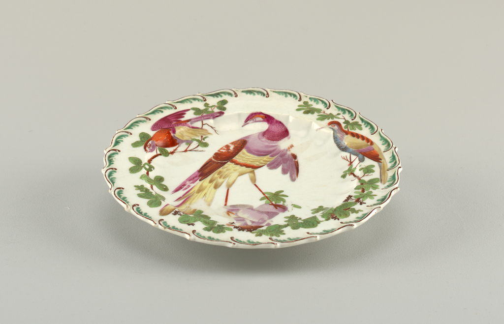 Plate with "Disheveled Birds" Plate; Manufactured by Chelsea Porcelain Manufactory (United Kingdom); Workshop of James Giles (British, 1718 - 1780); soft paste porcelain, vitreous enamel; H x diam.: 3 x 22.3 cm (1 3/16 x 8 3/4 in.); Gift of Forsyth Wickes; 1962-218-12