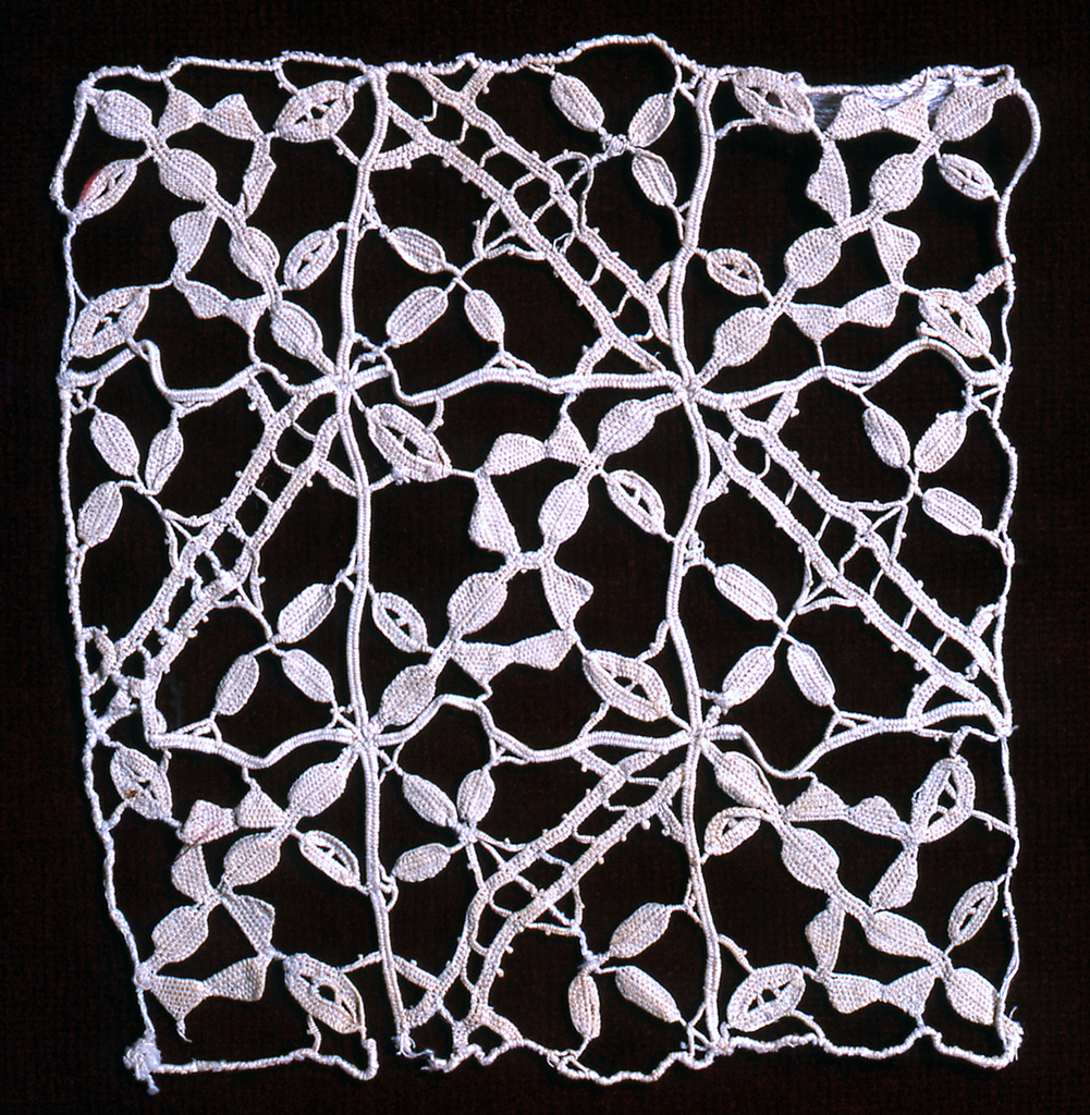 This is a Square. It is dated 16th century and we acquired it in 1962. Its medium is linen and its technique is grid of withdrawn element work with needle lace, reticella style. It is a part of the Textiles department.