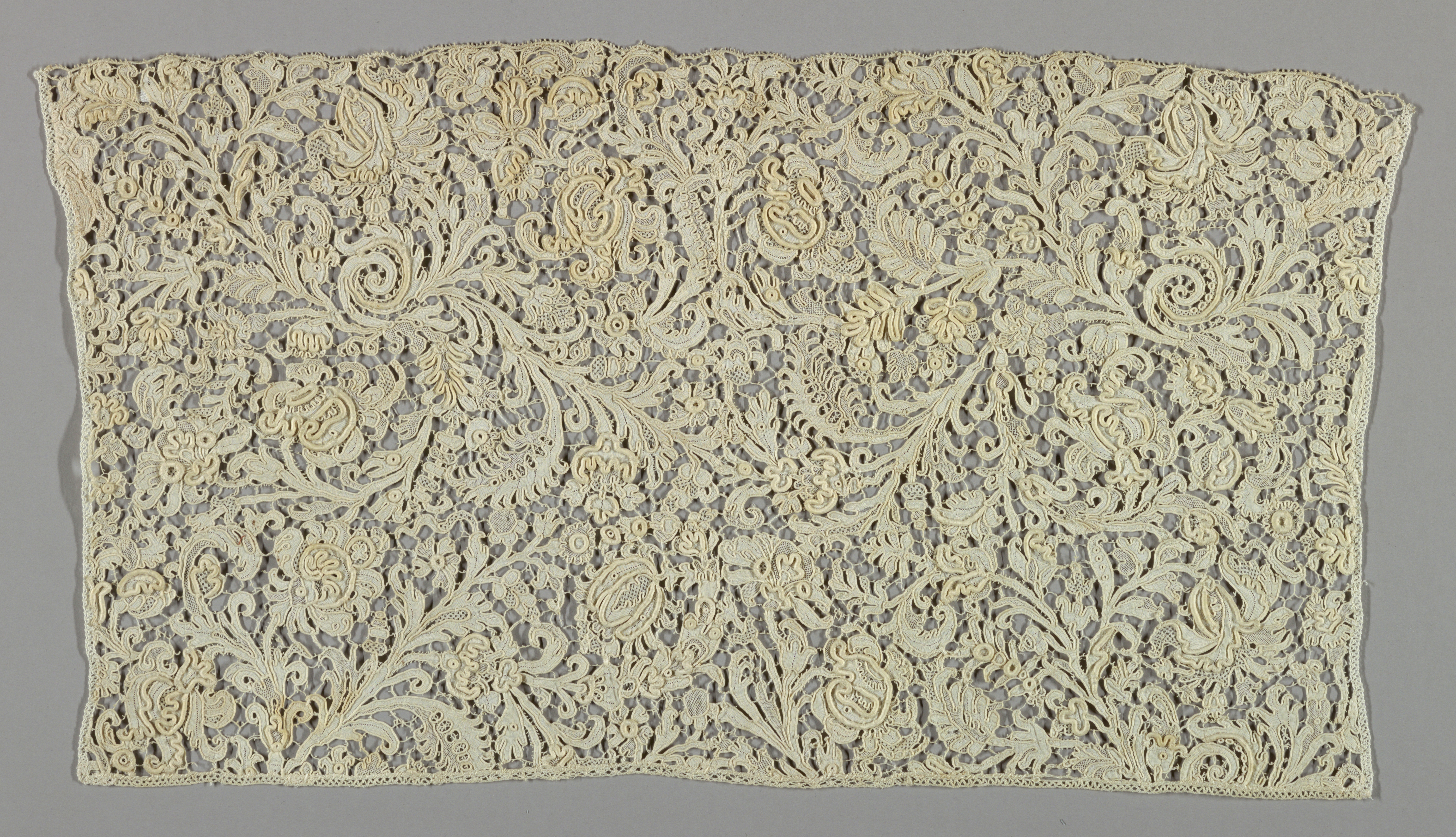 This is a Border. It is dated late 17th–early 18th century and we acquired it in 1962. Its medium is linen and its technique is needle lace. It is a part of the Textiles department.