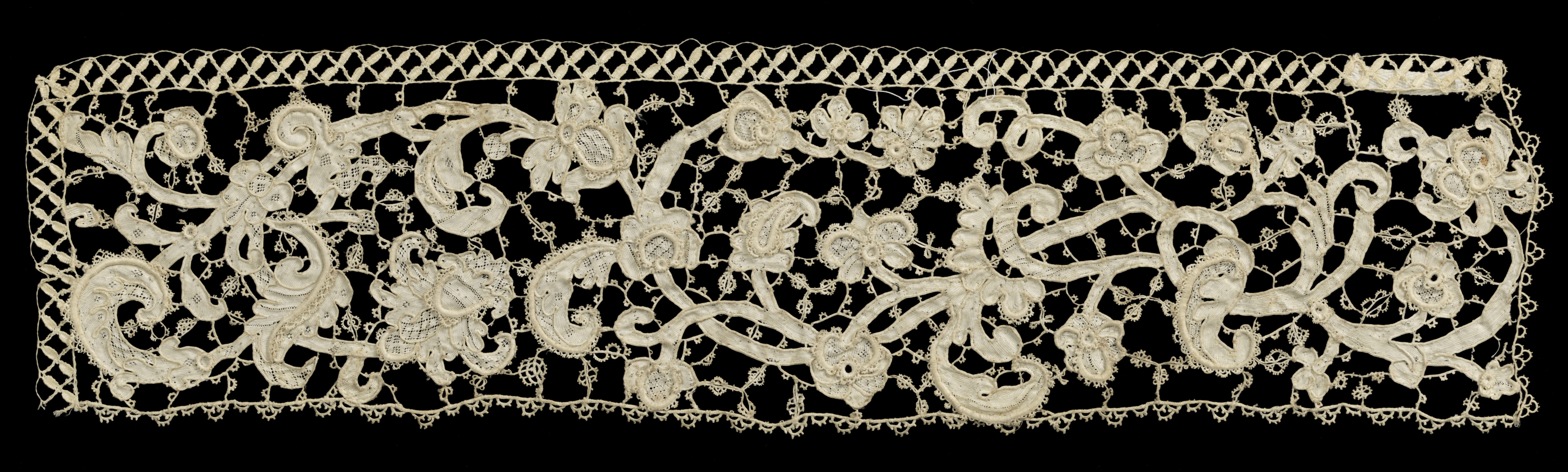 This is a Border. It is dated 18th century and we acquired it in 1962. Its medium is linen and its technique is raised needle lace. It is a part of the Textiles department.