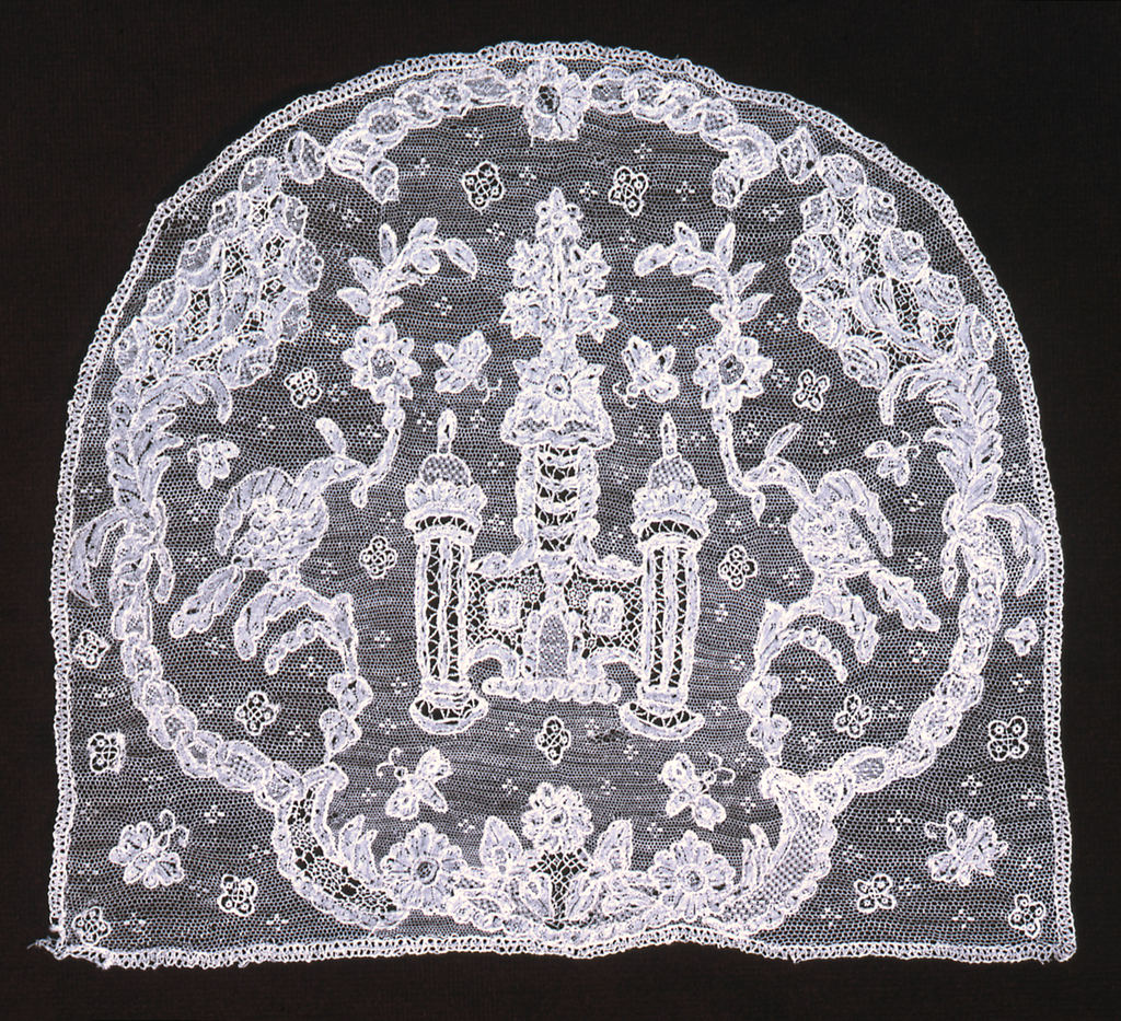 This is a Cap crown. It is dated 18th century and we acquired it in 1962. Its medium is linen and its technique is needle lace. It is a part of the Textiles department.
