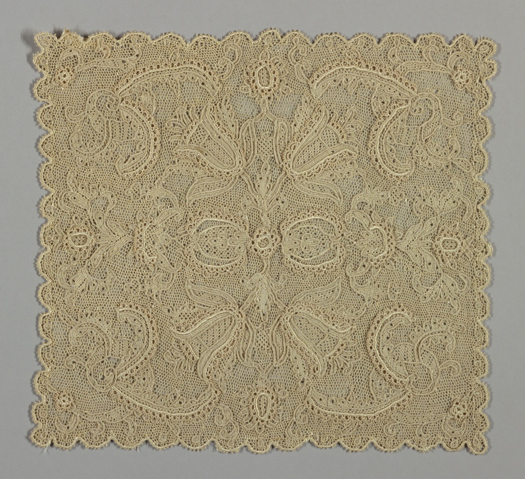This is a Square. It is dated late 19th–early 20th century and we acquired it in 1962. Its technique is needle lace, ground of loop & twist with twist return. It is a part of the Textiles department.