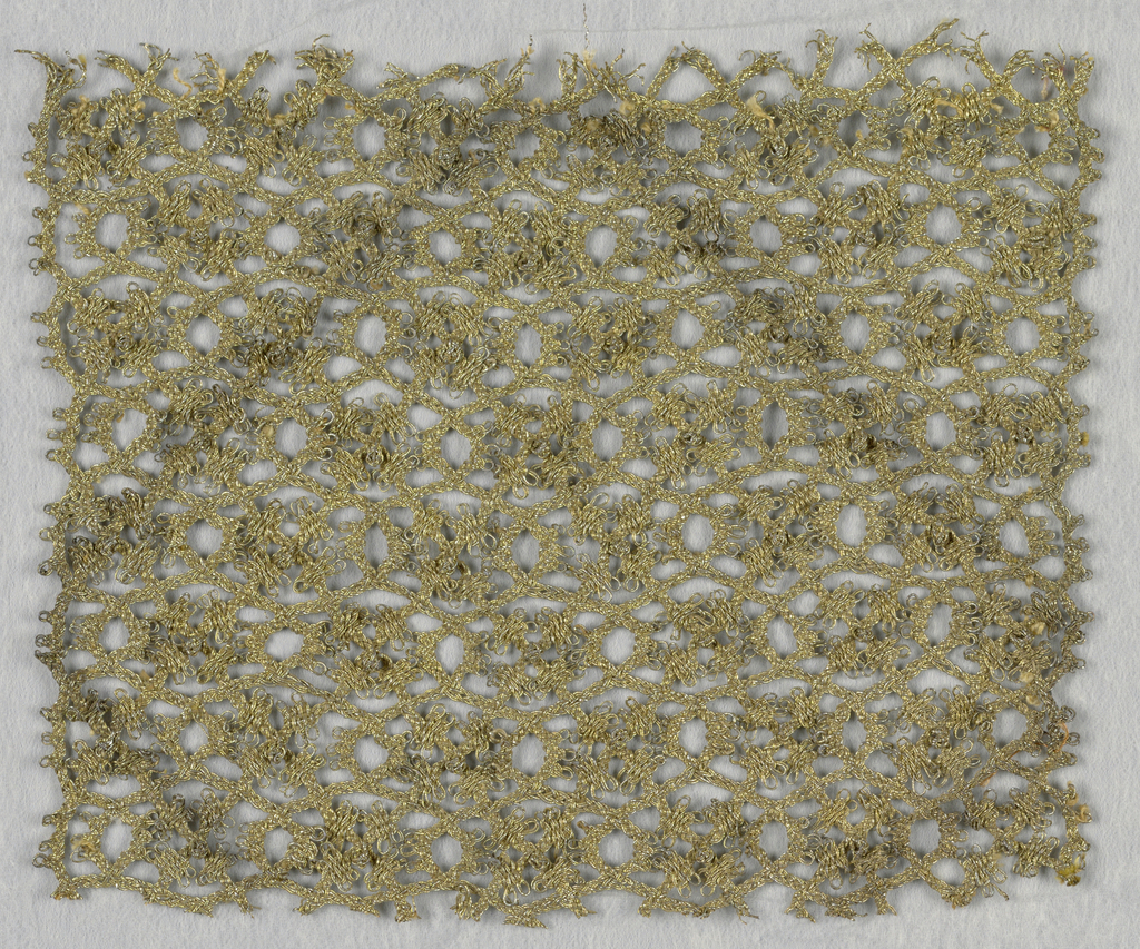 Fragment; metallic strips wrapped around linen core; H x W: 17 x 14.6 cm (6 11/16 x 5 3/4 in.); Bequest of Richard Cranch Greenleaf in memory of his mother, Adeline Emma Greenleaf; 1962-50-261