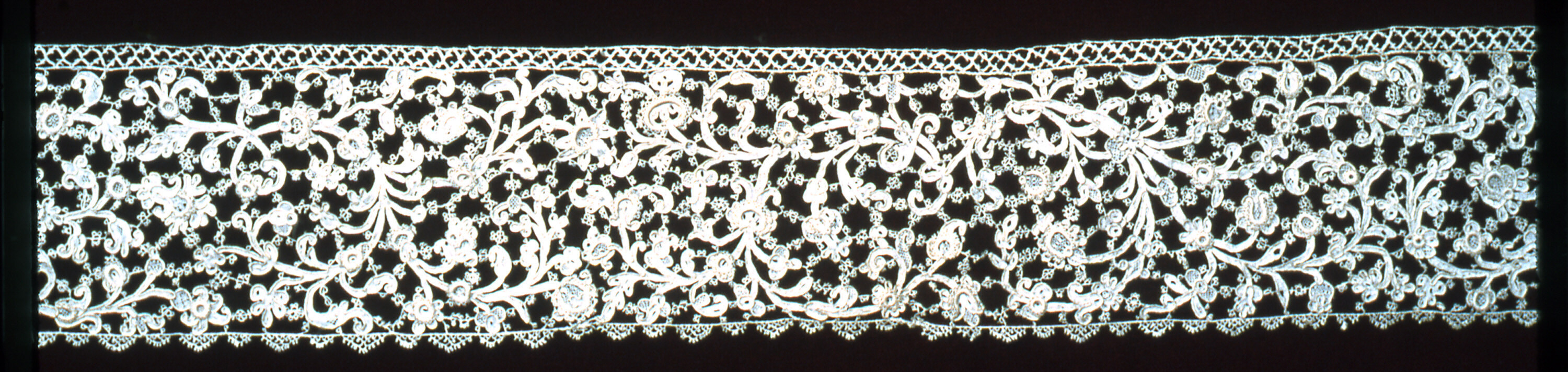 This is a Border. It is dated 1670–90 and we acquired it in 1962. Its medium is linen and its technique is needle lace. It is a part of the Textiles department.