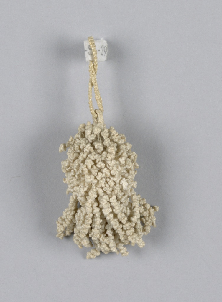 This is a Tassel. It is dated 17th century and we acquired it in 1962. Its medium is linen and its technique is braided and knotted. It is a part of the Textiles department.