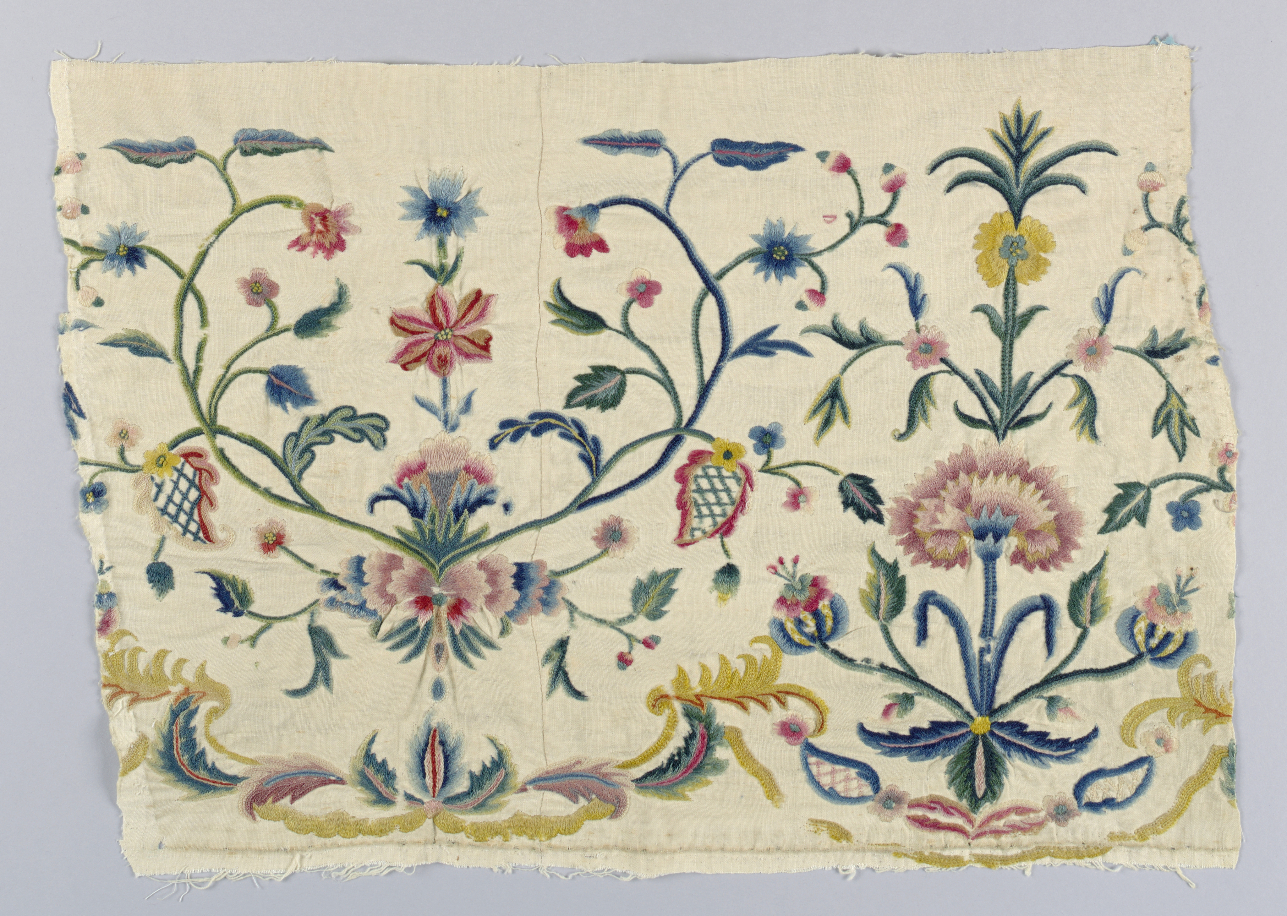 This is a Textile. It is dated 18th century and we acquired it in 1962. Its medium is wool on cotton and its technique is crewel wool embroidery. It is a part of the Textiles department.