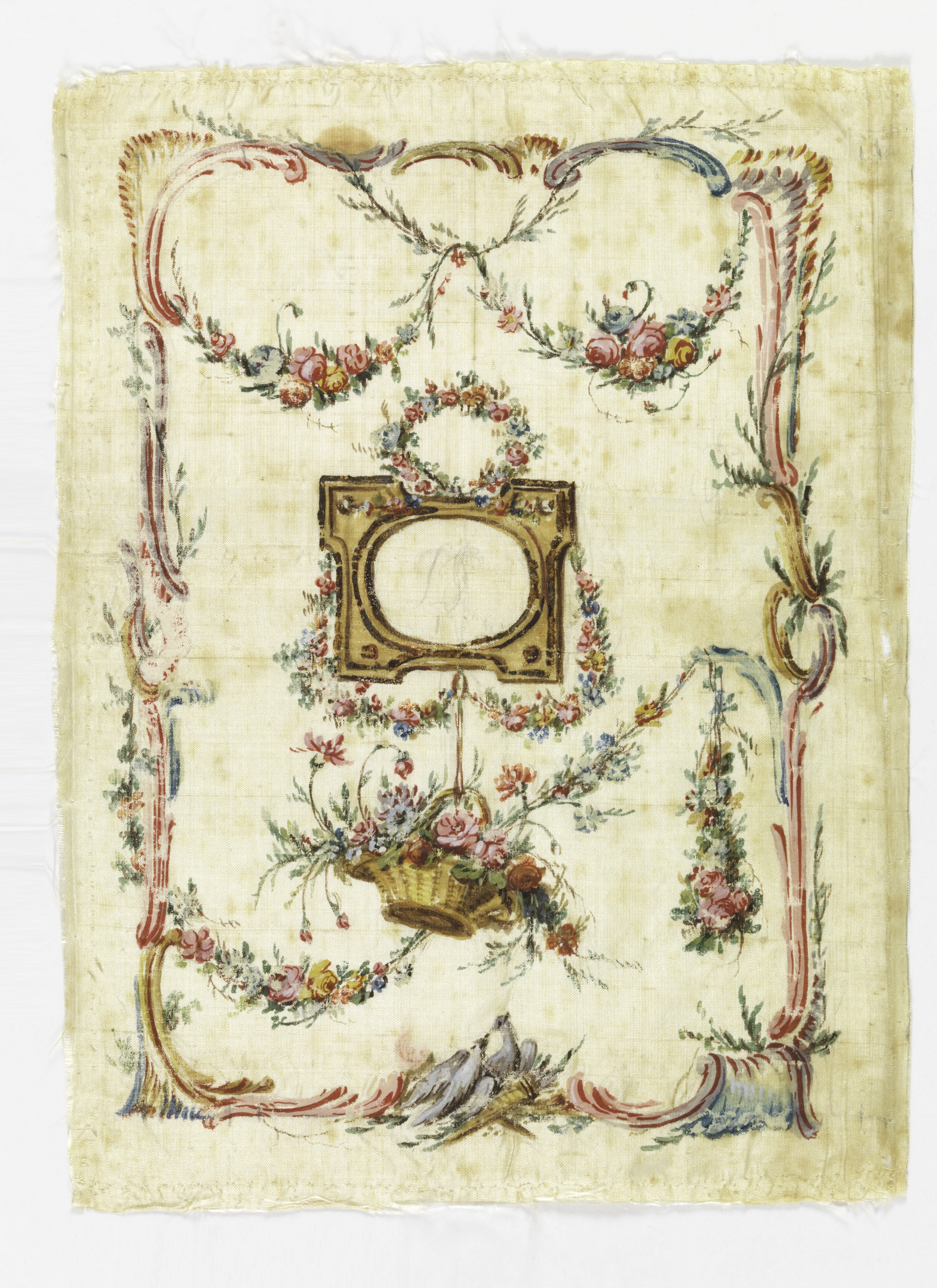 This is a Unfinished pocketbook. It is dated late 18th century and we acquired it in 1962. Its medium is silk and its technique is painted on plain weave. It is a part of the Textiles department.