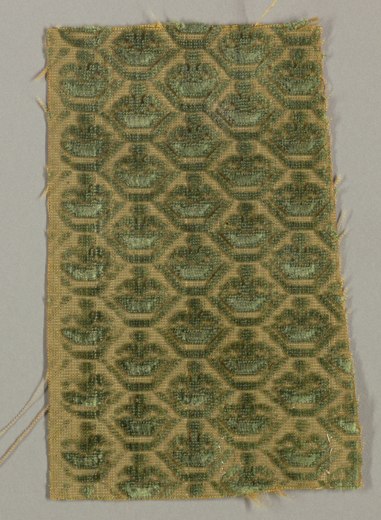 This is a Fragment. We acquired it in 1962. Its technique is velvet. It is a part of the Textiles department.