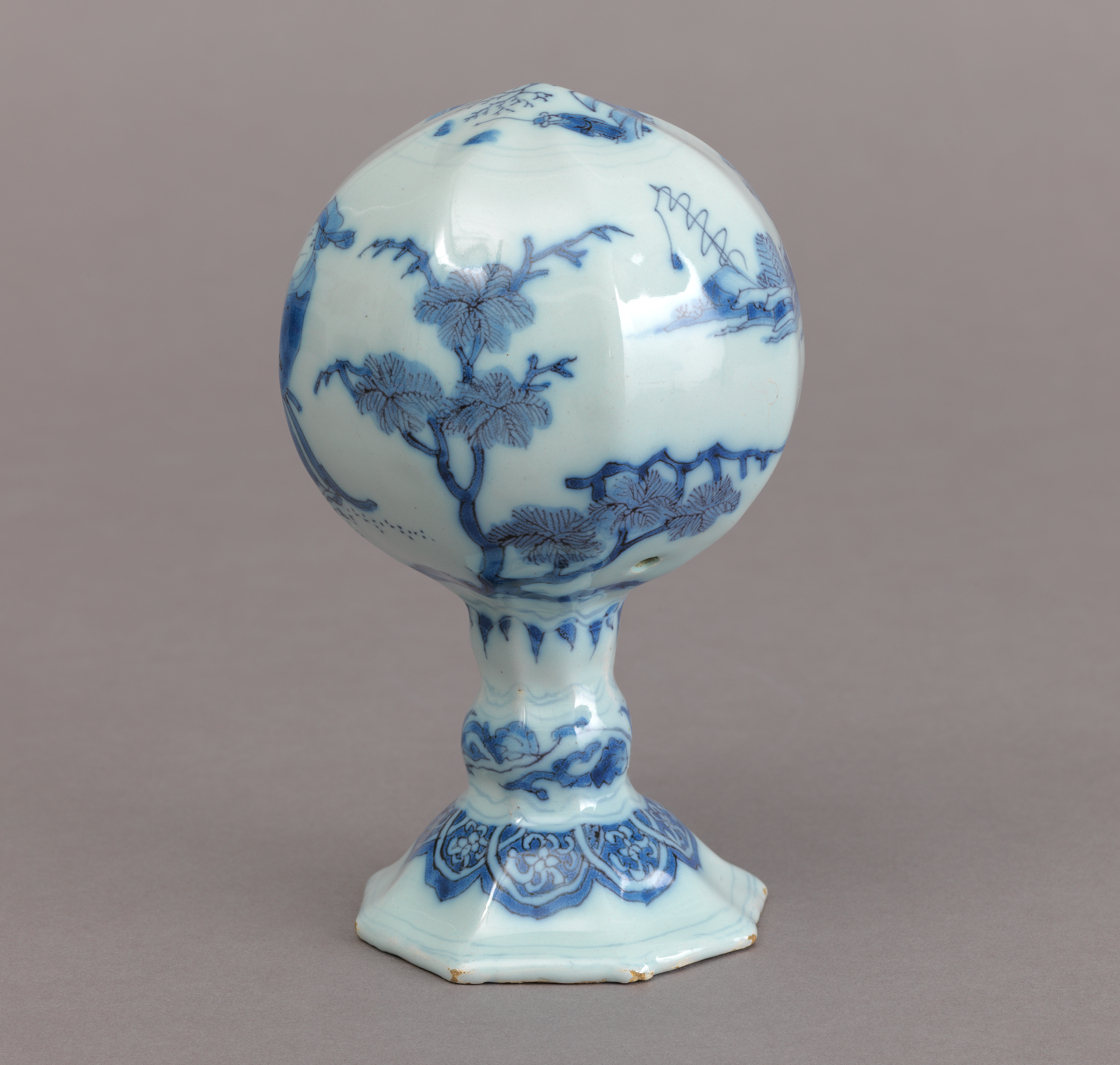 This is a Wig stand. It is dated mid-18th century and we acquired it in 1962. Its medium is tin-glazed earthenware. It is a part of the Product Design and Decorative Arts department.