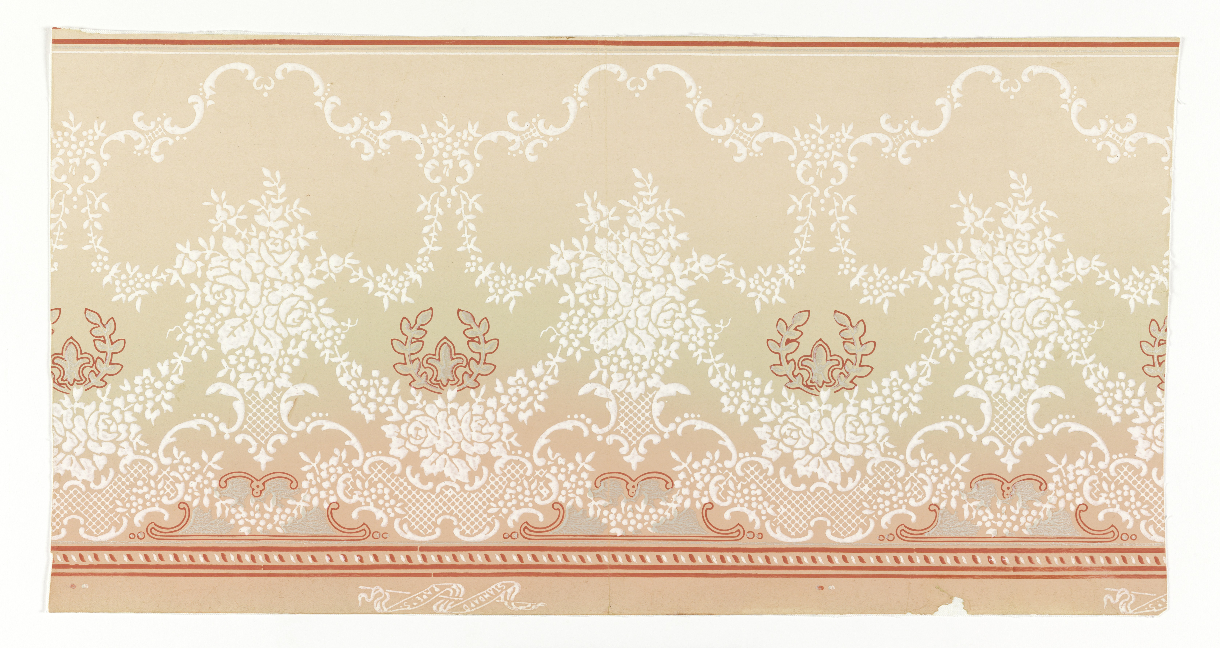This is a Border. It was made by Standard Wall-Paper Company. It is dated ca. 1900 and we acquired it in 1962. Its medium is machine-printed paper. It is a part of the Wallcoverings department.