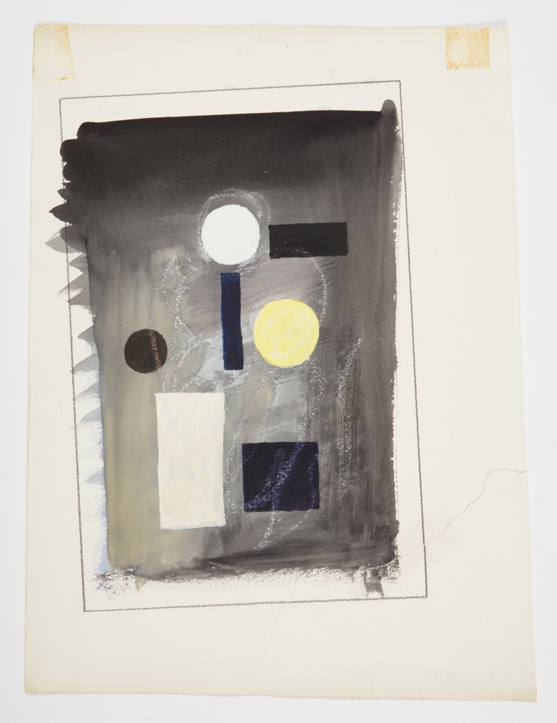 Drawing, Study for an Abstract Composition with Geometric Shapes; Designed by Edward McKnight Kauffer (American, active England, 1890–1954); USA; graphite, brush and gouache on paper; 22.2 × 30.4 cm (8 3/4 × 11 15/16 in.); Gift of Mrs. E. McKnight Kauffer; 1963-39-1030