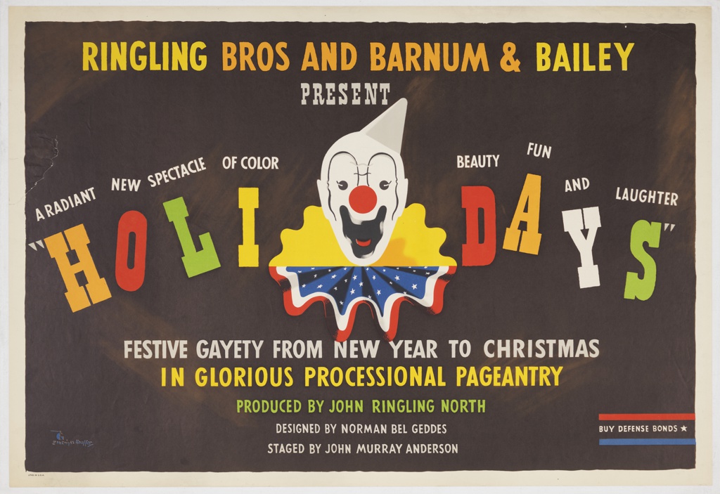 Poster, Holidays; Designed by Edward McKnight Kauffer (American, active England, 1890–1954); Client: Ringling Bros. and Barnum & Bailey; USA; lithograph on paper, lined; 71.1 × 104 cm (28 × 40 15/16 in.); Gift of Mrs. E. McKnight Kauffer; 1963-39-116-a