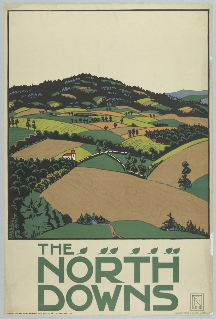 Poster, The North Downs; Designed by Edward McKnight Kauffer (American, active England, 1890–1954); Printed by Johnson, Riddle & Company Ltd.; Client: Underground Electric Railways of London Company Ltd.; England; lithograph; 76.2 × 51.1 cm (30 in. × 20 1/8 in.); Gift of Mrs. E. McKnight Kauffer; 1963-39-15