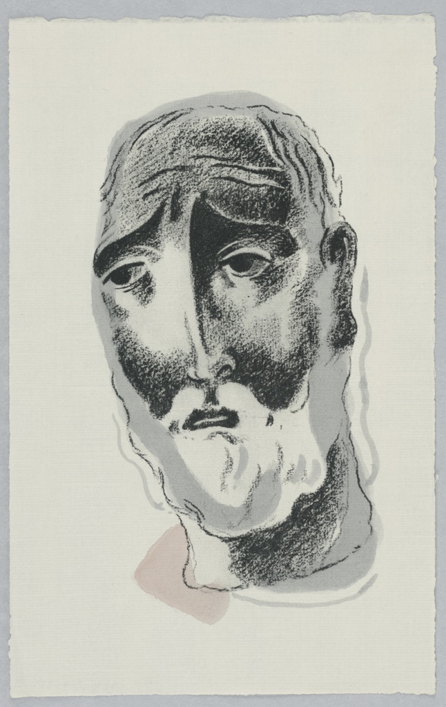 Print, Illustration for Don Quixote; Written by Miguel de Cervantes (Spanish, 1547–1616); Designed by Edward McKnight Kauffer (American, active England, 1890–1954); Printed by The Curwen Press (United Kingdom); Published by Nonesuch Press; USA; offset lithograph, hand-colored additions in brush and gray and pink watercolor on paper; 22.9 × 14.2 cm (9 × 5 9/16 in.); Gift of Mrs. E. McKnight Kauffer; 1963-39-362-b