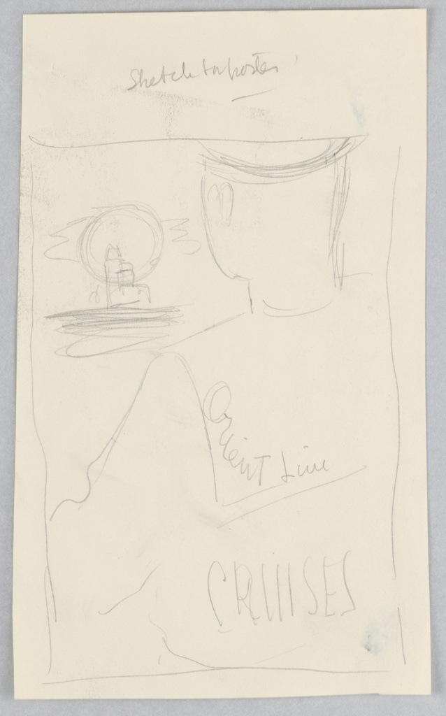 Drawing, Study for an Advertisement, Orient Line; Designed by Edward McKnight Kauffer (American, active England, 1890–1954); Client: Orient Line, Anderson, Green & Company Ltd.; USA; graphite on cream paper; 22.7 × 13.7 cm (8 15/16 × 5 3/8 in.); Gift of Mrs. E. McKnight Kauffer; 1963-39-564