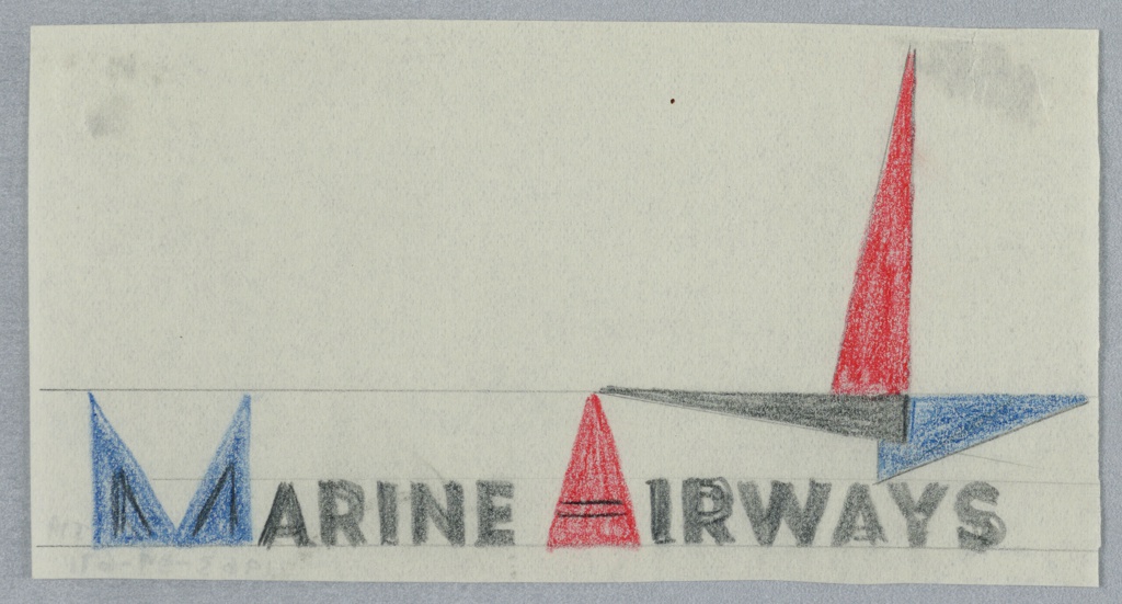 Drawing, Study for Marine Airways Advertisement; Designed by Edward McKnight Kauffer (American, active England, 1890–1954); Client: British Airways; USA; graphite and red, black, and blue crayon on thin paper; 6 × 11.5 cm (2 3/8 × 4 1/2 in.); Gift of Mrs. E. McKnight Kauffer; 1963-39-671