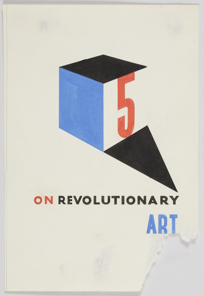 Drawing, Study for a Book Cover, "5 On Revolutionary Art"; Designed by Edward McKnight Kauffer (American, active England, 1890–1954); Published by Wishart Limited; USA; graphite, brush and red, blue, and black gouache on paper; 19 × 12.6 cm (7 1/2 × 4 15/16 in.); Gift of Mrs. E. McKnight Kauffer; 1963-39-691-b