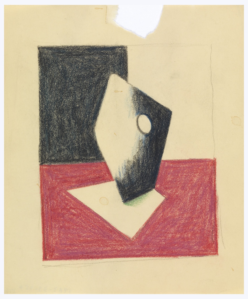 Drawing, Study of an Abstract Composition; Designed by Edward McKnight Kauffer (American, active England, 1890–1954); USA; graphite, red, black and white crayon on paper; 17.5 × 14.6 cm (6 7/8 × 5 3/4 in.); Gift of Mrs. E. McKnight Kauffer; 1963-39-756
