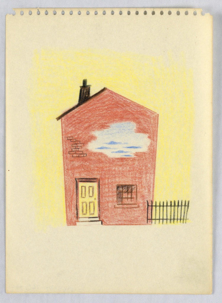 Drawing, Study of a Brick House; Designed by Edward McKnight Kauffer (American, active England, 1890–1954); USA; color crayon on paper; 17.4 × 12.5 cm (6 7/8 × 4 15/16 in.); Gift of Mrs. E. McKnight Kauffer; 1963-39-766