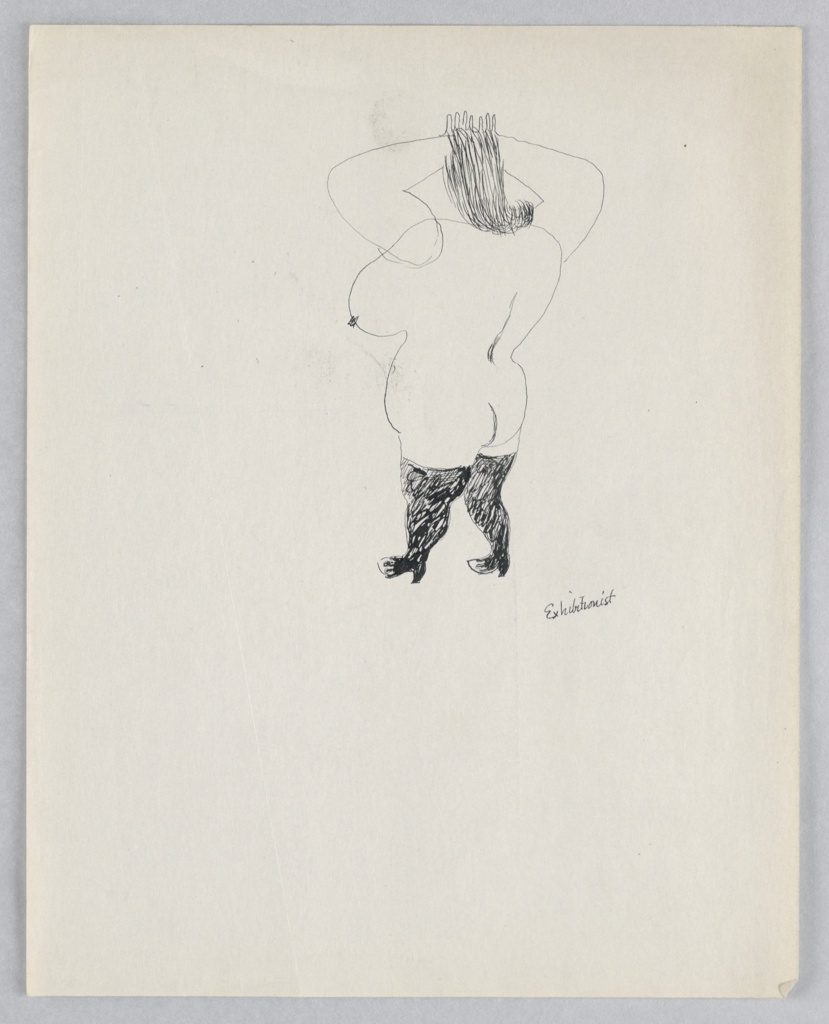 Inscribed in pen and black ink, to lower right of drawing: Exhibitionist