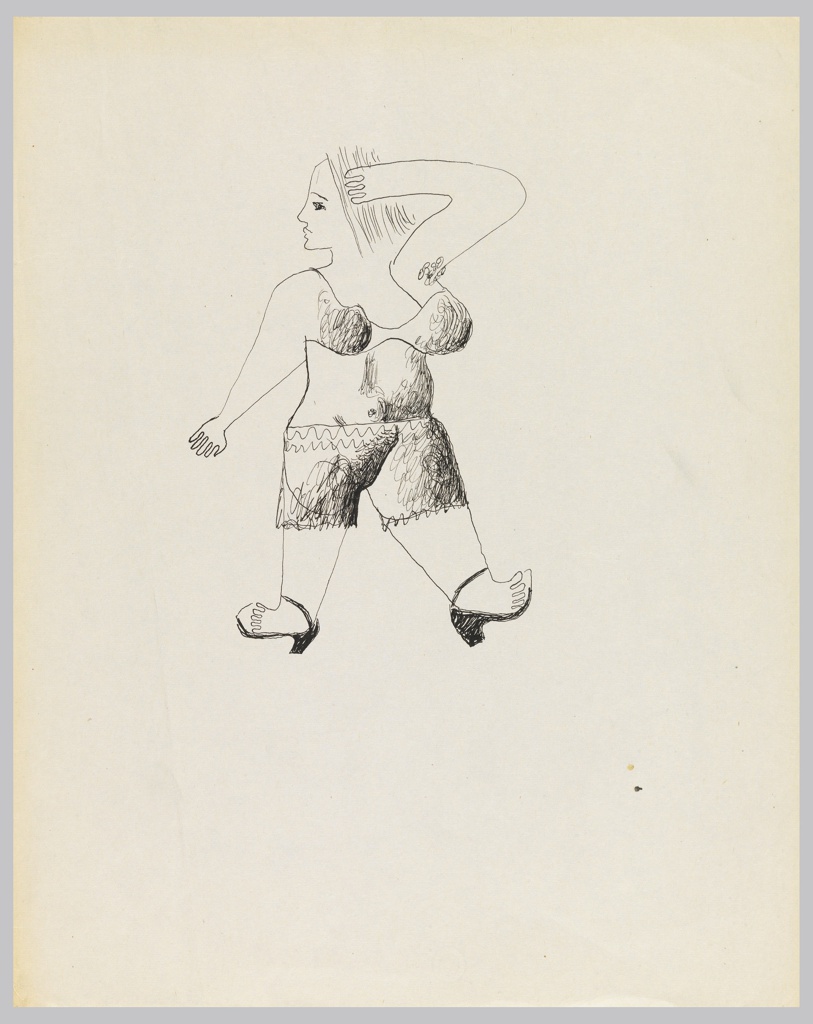 Drawing, Study for a Figure in Undergarments; Designed by Edward McKnight Kauffer (American, active England, 1890–1954); USA; pen and black ink on off-white paper; 26.6 × 21.2 cm (10 1/2 × 8 3/8 in.); Gift of Mrs. E. McKnight Kauffer; 1963-39-793