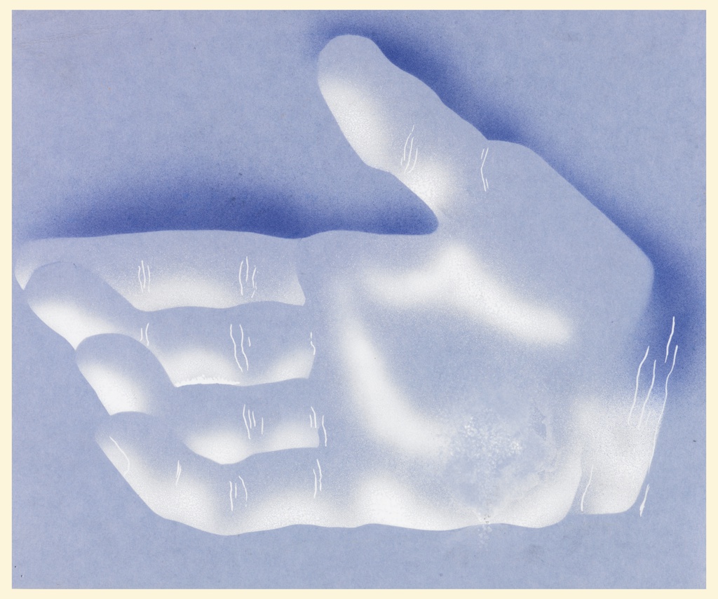 Drawing, Study for "Keep Well"; Designed by Edward McKnight Kauffer (American, active England, 1890–1954); Client: Eno's Fruit Salt; USA; airbrush and white and blue gouache on blue paper; 23 × 19.2 cm (9 1/16 × 7 9/16 in.); Gift of Mrs. E. McKnight Kauffer; 1963-39-960