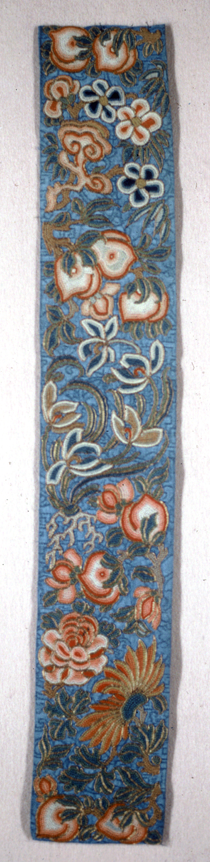 Sleeve Bands (China); silk, metallic thread; H x W (a): 55 x 9 cm (21 5/8 x 3 9/16 in.) H x W (b): 55 x 9 cm (21 5/8 x 3 9/16 in.); Gift of Mrs. E. Sanderson Cushman; 1963-49-3-a,b