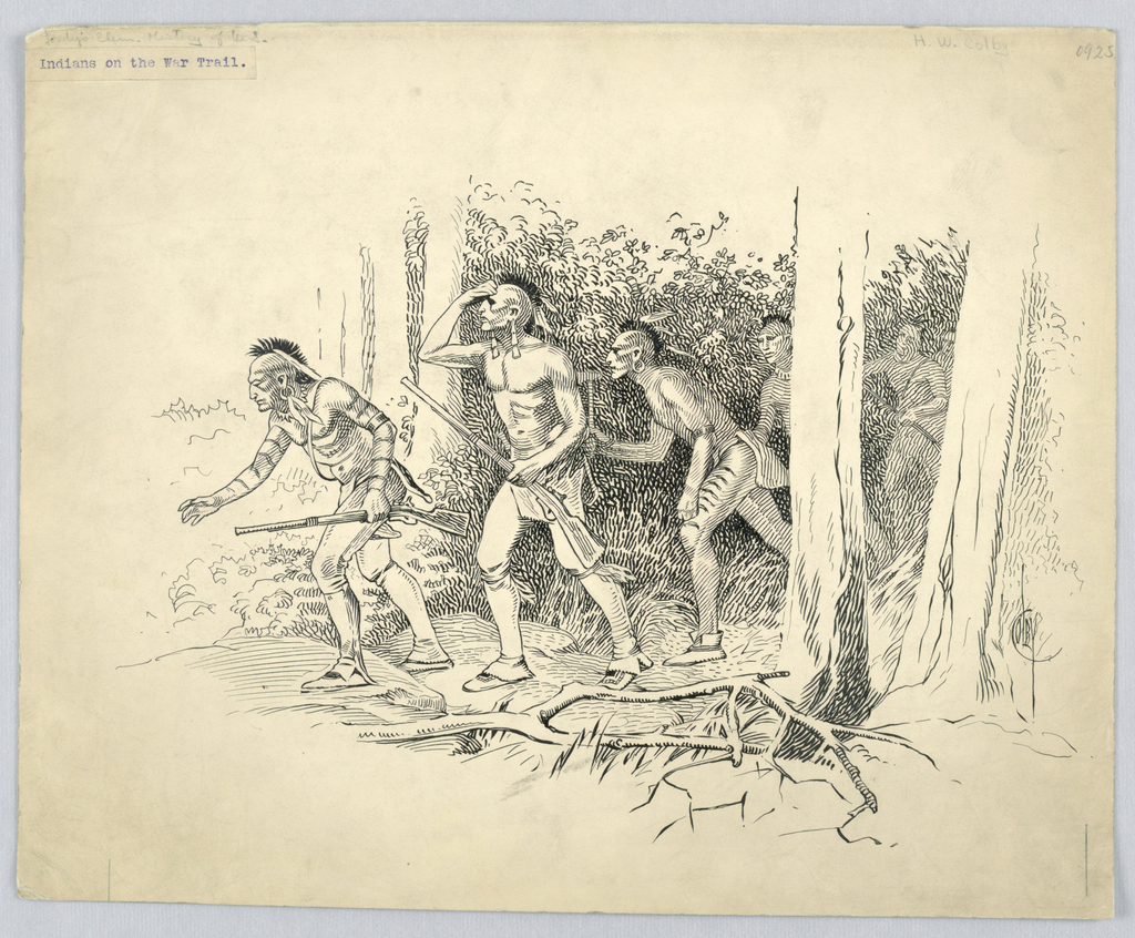 Drawing, "Indians on the War Trail"; Published by Charles Scribner's Sons; Illustrated by Homer Wayland Colby (American, 1874–1950); pen and black ink on illustration board; 27 × 33.3 cm (10 5/8 × 13 1/8 in.); 1963-91-7