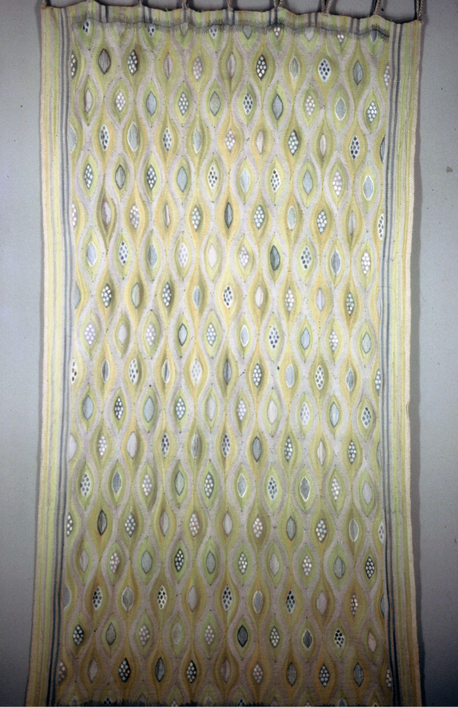 Hanging, Yellow Ovoids; Designed by Barbro Nilsson (Swedish, 1899 – 1983); Sweden; linen, wool; H x W: 245.1 x 124.5 cm (96 1/2 x 49 in.); Gift of Elizabeth Gordon; 1964-24-42