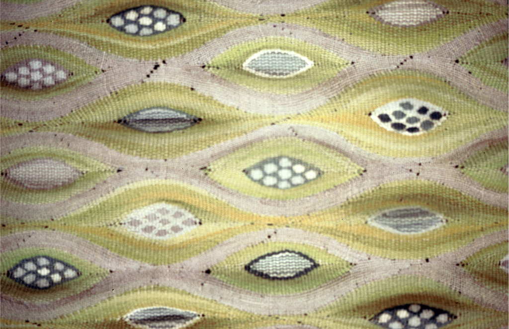 Hanging, Yellow Ovoids; Designed by Barbro Nilsson (Swedish, 1899 – 1983); Sweden; linen, wool; H x W: 245.1 x 124.5 cm (96 1/2 x 49 in.); Gift of Elizabeth Gordon; 1964-24-42
