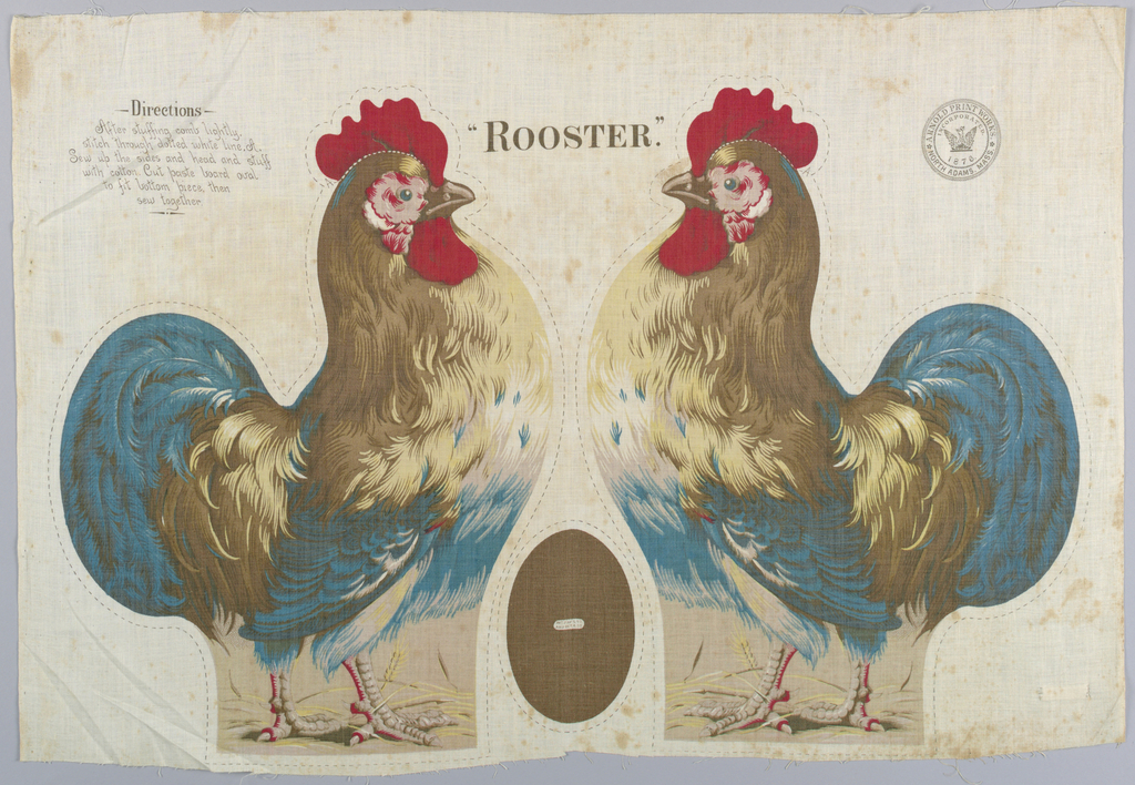 See more objects with the tag domestic, birds, colorful, sewing, roosters, textiles.