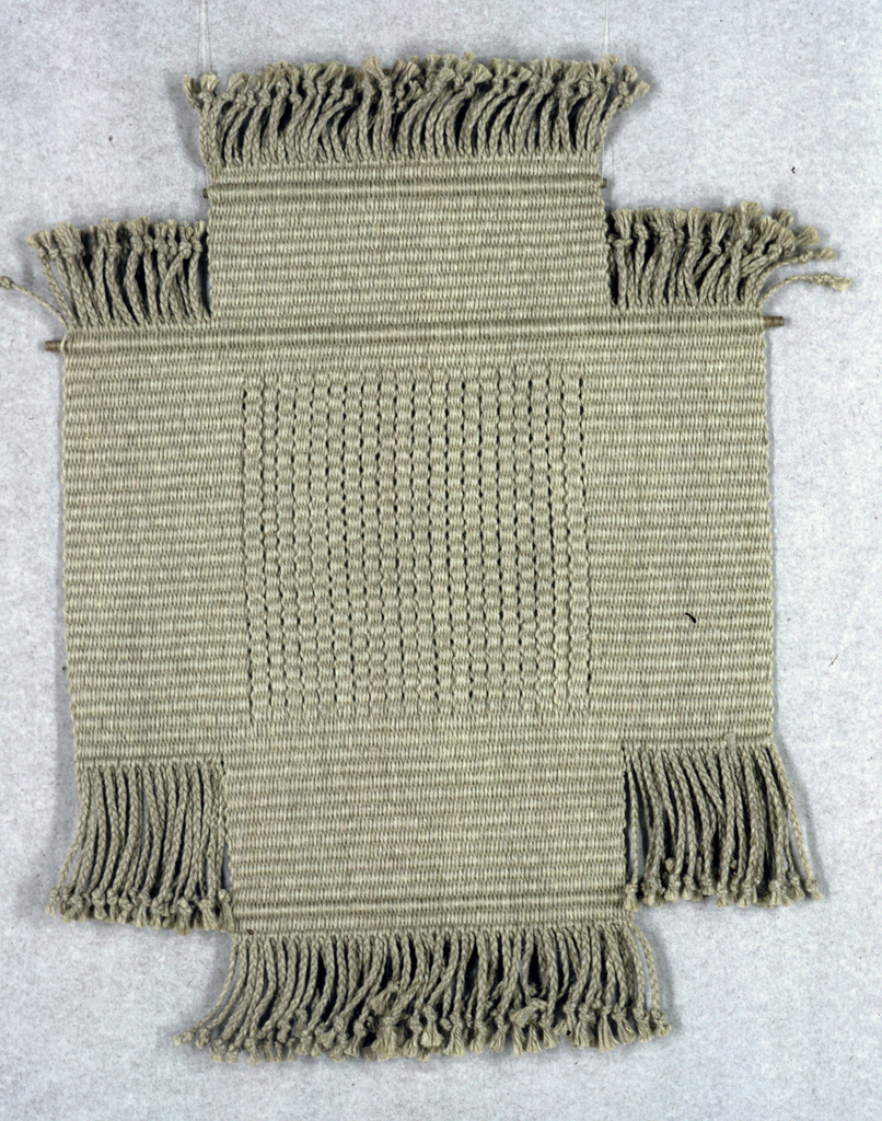 Hanging, Cross; Designed by Lenore Tawney ((American, 1907–2007)); USA; linen; H x W: 51 x 36 cm (20 1/16 x 14 3/16 in.); 1964-57-2