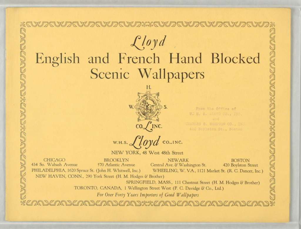 Pamphlet, Lloyd English & French Handblocked Scenic Wallpaper; Distributed by W.H.S. Lloyd Co., Inc.; USA; paper; 31.5 x 23.5 cm (12 3/8 x 9 1/4 in.); 1965-45-1-a,b