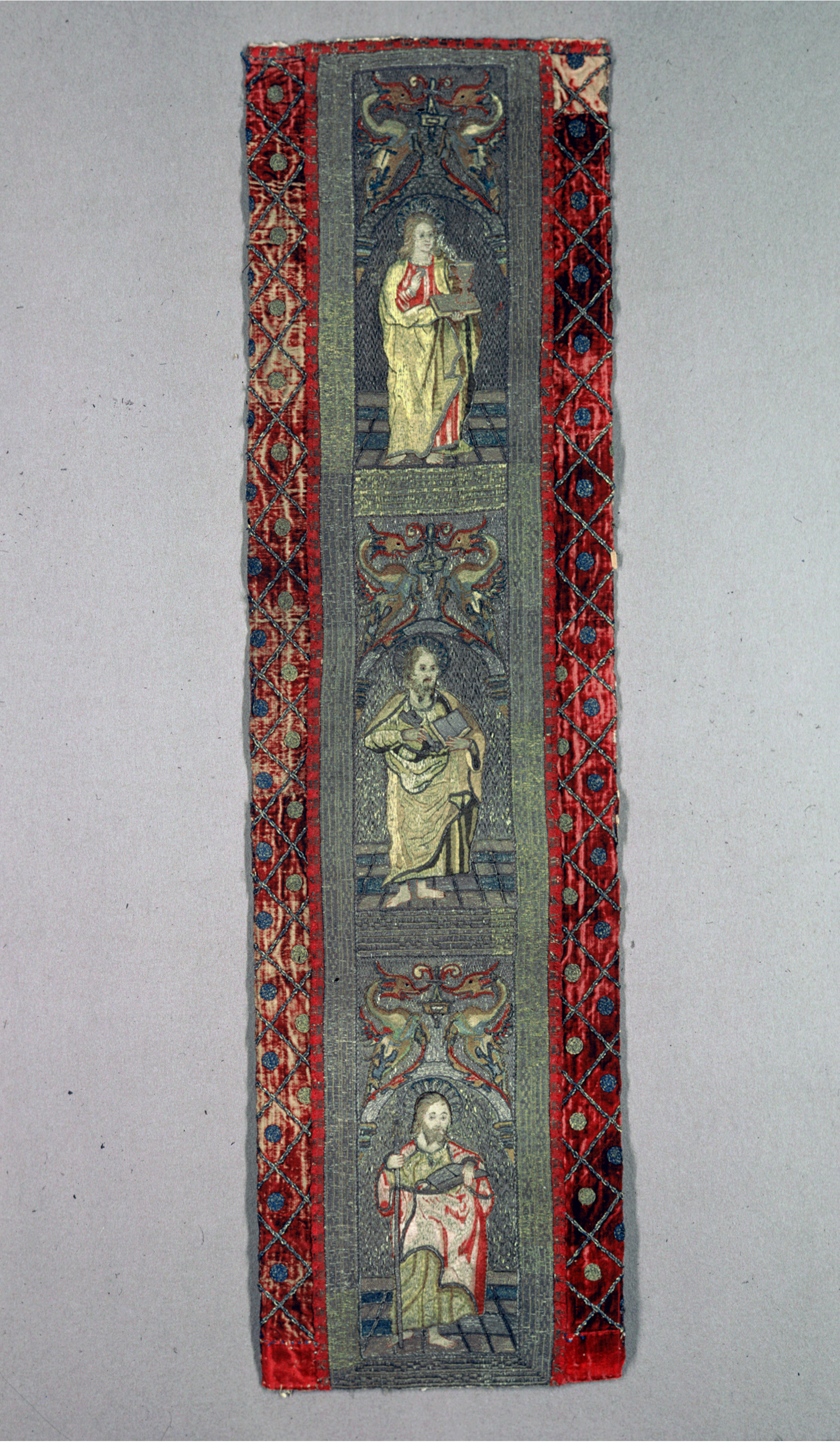 Orphrey; silk, metal, linen; H x W: 34.5 x 126.5 cm (13 9/16 x 49 13/16 in.); Gift of the Estate of Harry G. Friedman; 1966-2-4