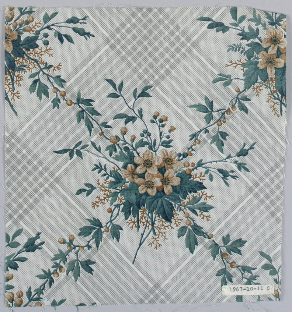 Textile; Manufactured by Schwartz-Huguenin; cotton; H x W: 22 x 20 cm (8 11/16 x 7 7/8 in.); Gift of Bruce Buttfield; 1967-10-11-c