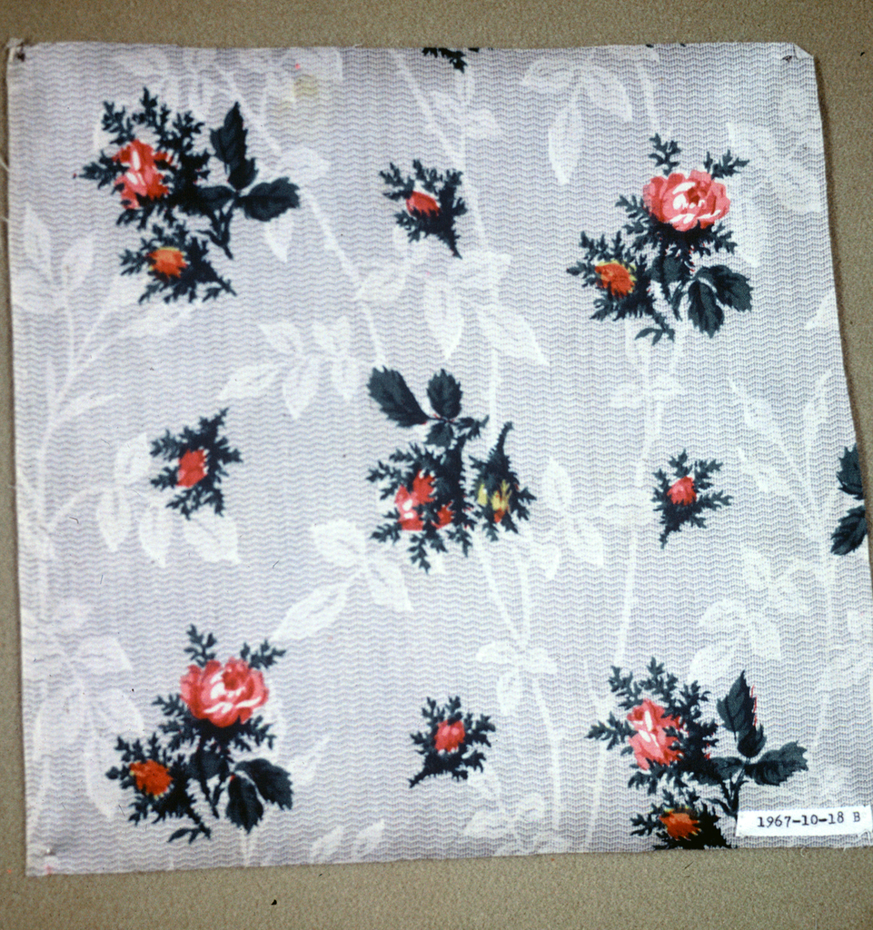 Textile; Manufactured by Schwartz-Huguenin; cotton; H x W: 22 x 23.3 cm (8 11/16 x 9 3/16 in.); Gift of Bruce Buttfield; 1967-10-18-b