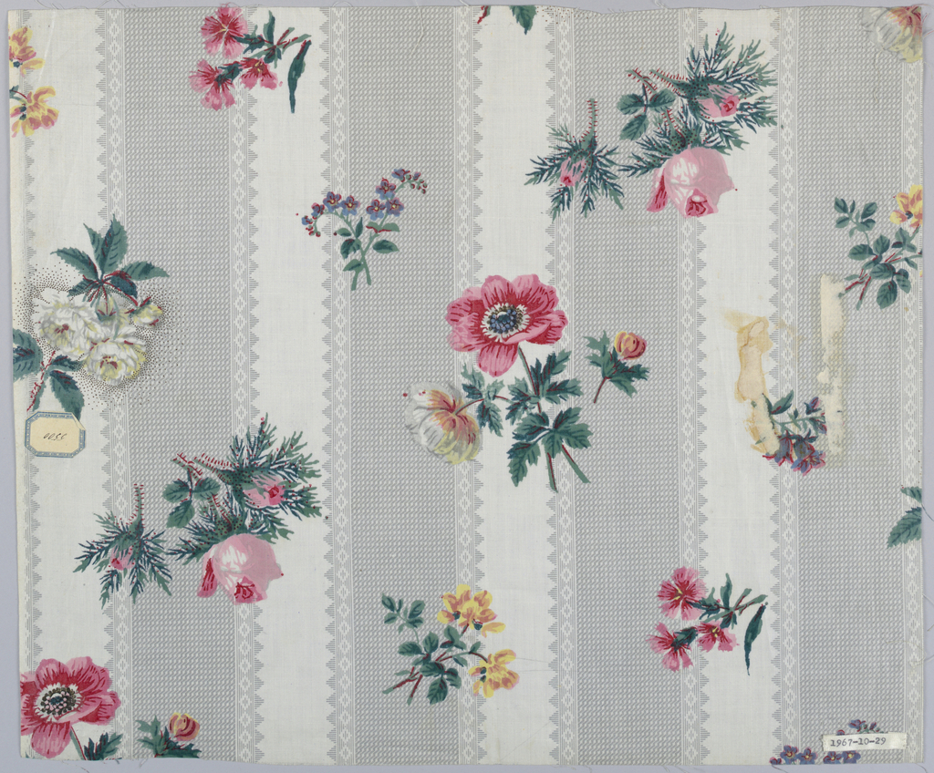 This is a Textile. It is dated 1851–63 and we acquired it in 1967. Its medium is cotton and its technique is printed by engraved roller and block printed. It is a part of the Textiles department.